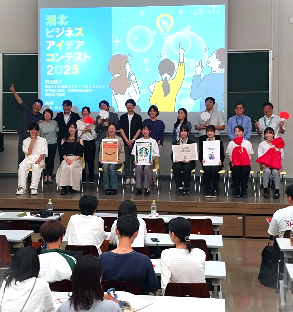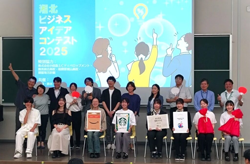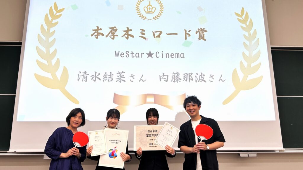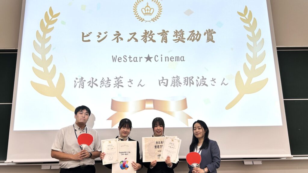 清水さんと内藤さんは、「本厚木ミロード賞」さらに高校の先生方による「ビジネス教育奨励賞」を受賞しました。本当によく頑張ったと思います。